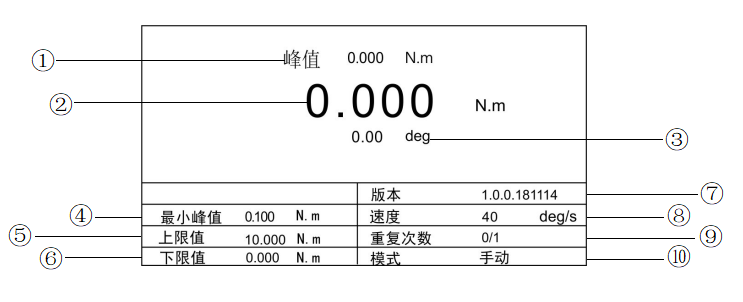 ① 表示儀器在測(cè)試產(chǎn)品時(shí)所產(chǎn)生的峰值扭矩值。