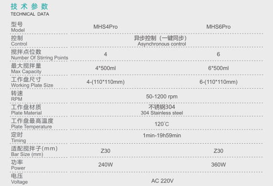 群安多聯(lián)加熱磁力攪拌器MHS4Pro/MHS6Pro