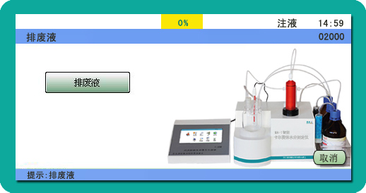 如果兩次實(shí)驗(yàn)相隔時(shí)間較長(一般指10天以上),您還可以將容量管中的剩余卡爾費(fèi)休試劑注回試劑瓶中,以減少試劑的浪費(fèi),這一步驟同樣只需您操作觸摸屏即可。