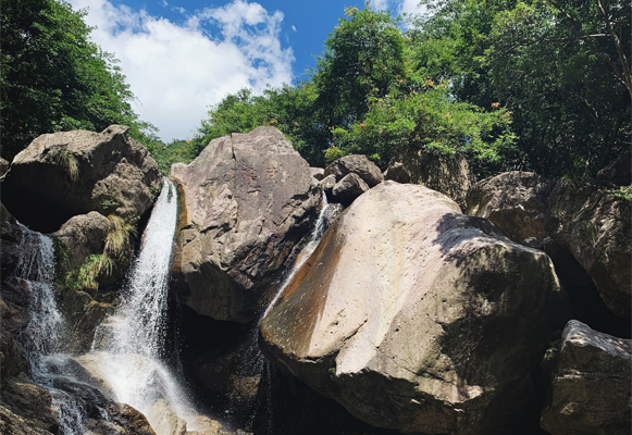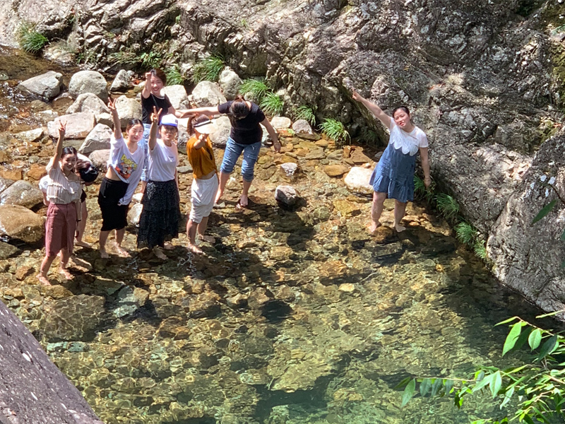 上午我們組織登山活動,一路上風景秀麗,綠樹成蔭。雖然是高達36℃高溫天氣,但是在大龍灣的山谷里沒有感受到一絲絲炎熱,山里奇石飛瀑,流淌的水都是沁人的冰爽!